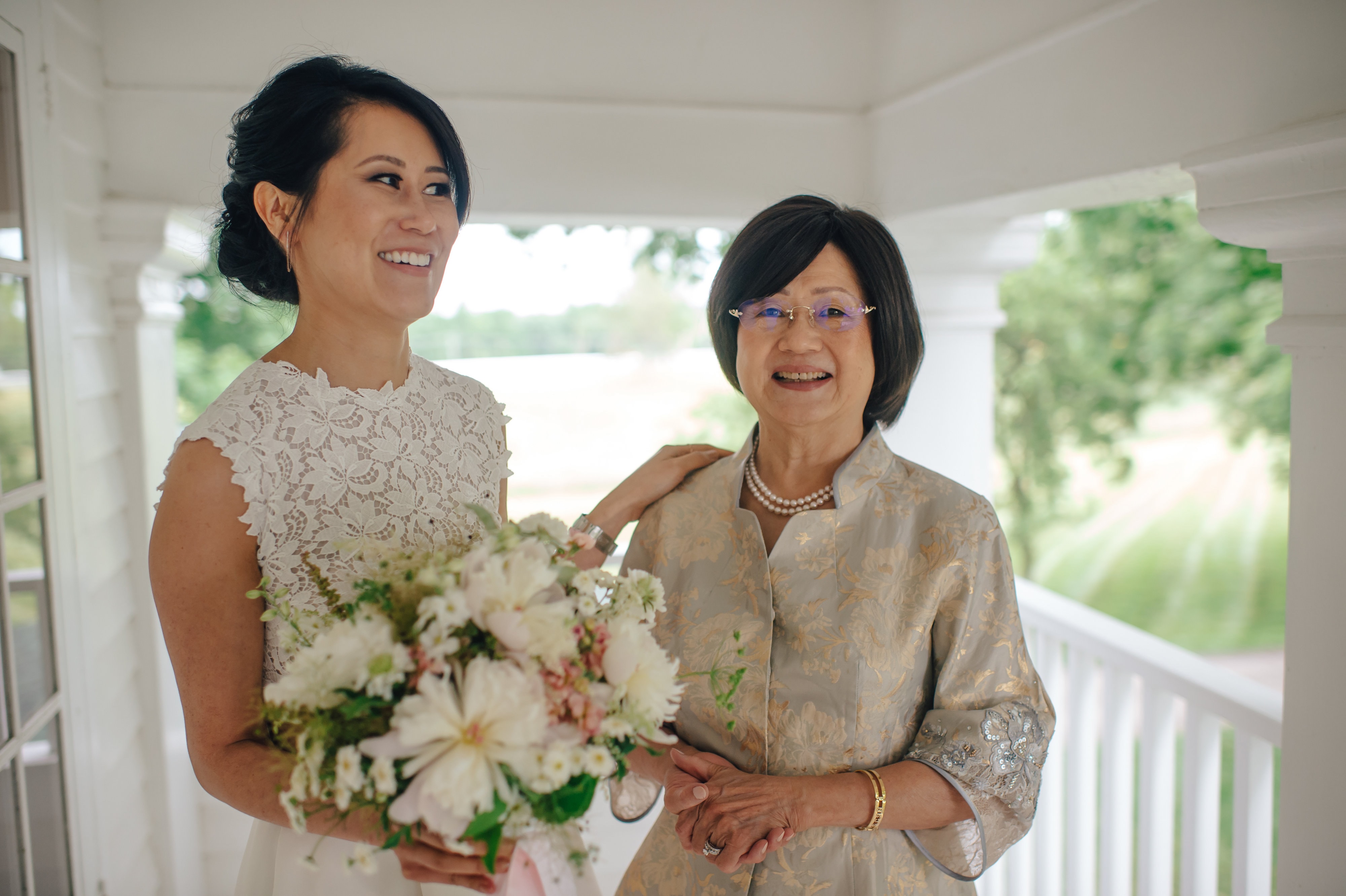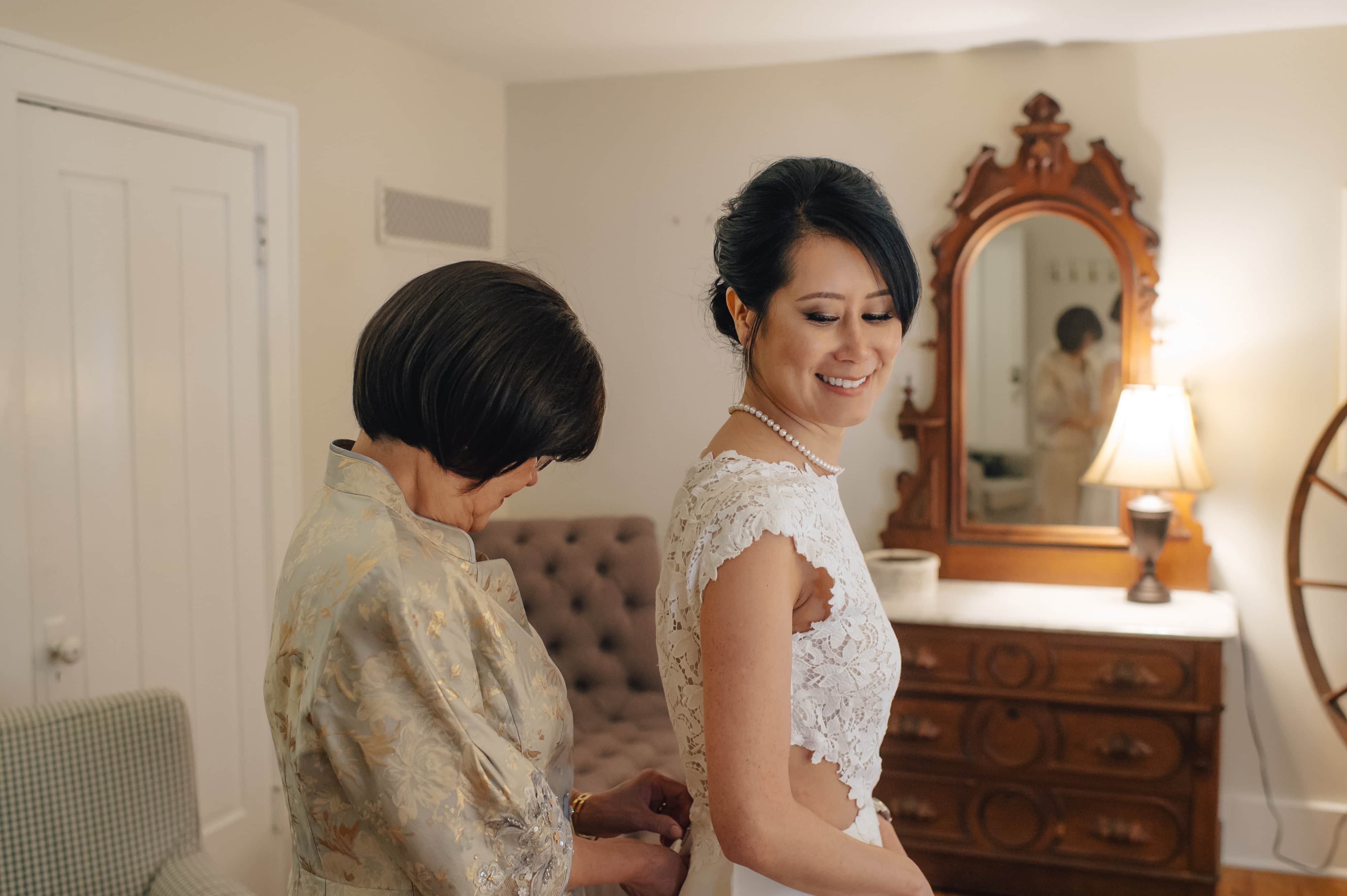The June day was perfect for a small outdoor wedding. Julie arrived early afternoon for the final touches of getting ready in the beautiful dressing area in the main house. She had already been to Imagine Three Beauty Studio for her hair and make-up.